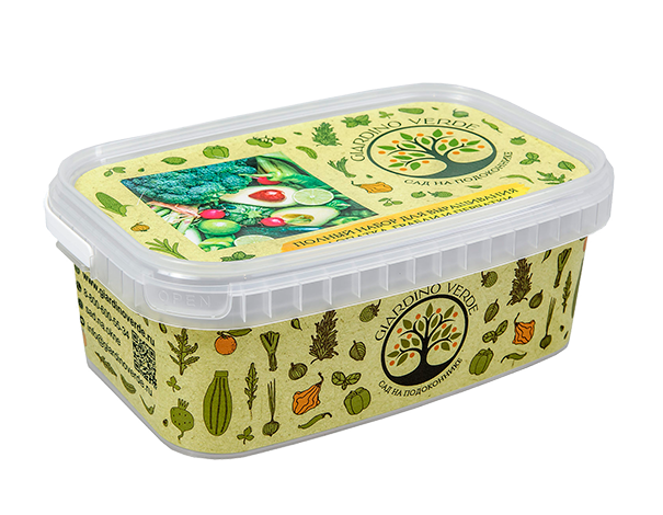 Благодаря разработанной технологии посадки Вы сможете сэкономить время и силы. Вам не нужно пересыпать землю в горшок и избавляться от упаковки. Контейнер Giardino Verde уже полностью подготовлен к посадке. При помощи вложенных садовых инструментов Вы разравниваете почву, делаете углубления дли посадки и поливаете водой. Крышка послужит Вам в качестве парника, а через прорези Вы сможете наблюдать за уровнем влаги в почве.